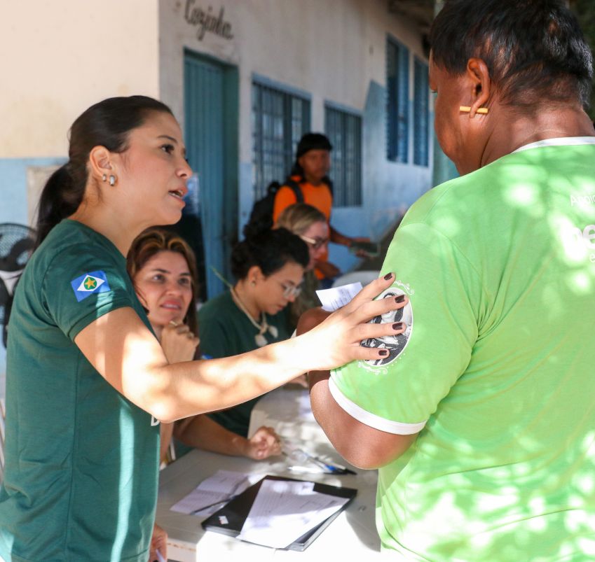 Geroni Camargo, secretária de saúde de Nova Nazaré, que foi parceira do evento, destaca a importância desse evento para aqueles que trabalham com indígenas e enfrentam dificuldades, seja devido à distância das aldeias ou às diferenças culturais. Ela ressalta a oportunidade de aproximar ainda mais as orientações de saúde para eles, como a orientação em relação à vacinação, na qual ainda há resistência.