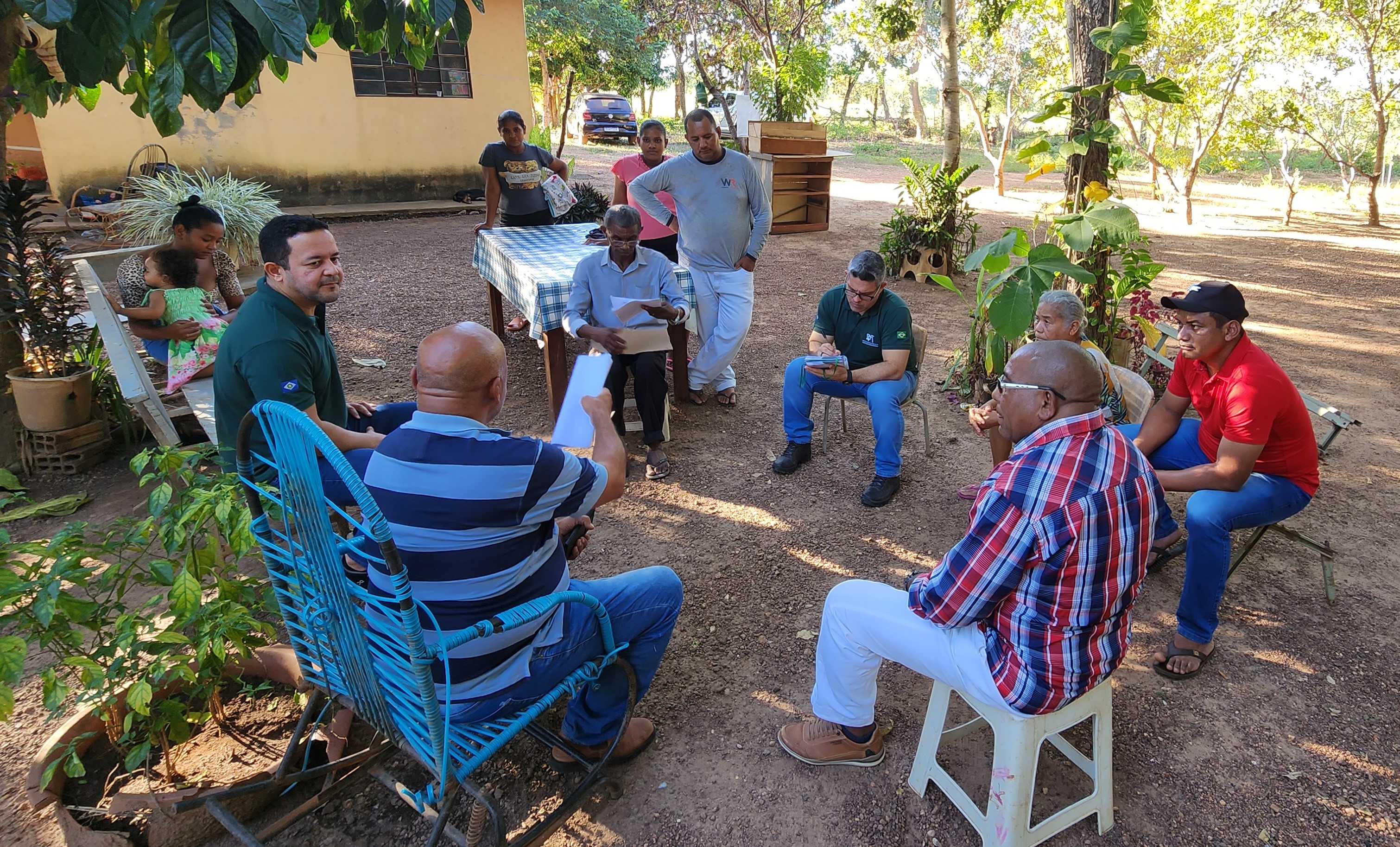 O secretário executivo da DPMT, Clodoaldo Queiroz, e o coordenador do Grupo de Atuação Estratégica em Defesa da Saúde Coletiva (Gaedic/Saúde), Fábio Barbosa, visitaram o presidente da Associação da Comunidade, Ângelo Jesus de Campos, para apresentar os serviços do órgão e oferecer auxílio, após tomar conhecimento do processo de despejo. No local vivem atualmente cerca de 80 famílias que sobrevivem da lavoura de subsistência.