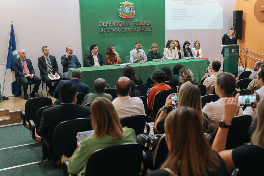 A mesa do evento foi composta pela defensora pública-geral de Mato Grosso, Luziane Castro, defensor Paulo Marquezini, coordenador do Grupo de Atuação Estratégica (Gaedic) Sistema Prisional, juiz Marcos Faleiros, representando o Tribunal de Justiça (TJMT), Diógenes Marcondes, representando a Secretaria de Estado de Saúde, Monalisa Toledo, representando a Secretaria de Estado de Segurança Pública, e as peritas do MNPCT, Camila Santana, Maria Cecília Arruda, e Viviane Ribeiro.